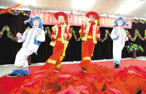 昨日上午,天津市西青监狱举行一场由特殊的服刑人员自编自导的文艺演出。演出的服刑人员都是艾滋病病毒携带者,在监狱民警的帮助挽救下,他们重新找到生活的快乐与希望。图为服刑人员在表演自编自导的文艺节目。 本报记者 王晓明 摄 冯琳 文 通讯员 刘莉
