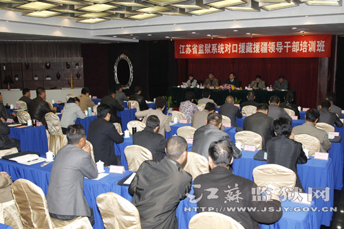 11月15日,江苏省监狱系统对口援藏援疆领导干部培训班在南京顺利开班,局党委委员、政治部主任沈建生参加开班典礼并致辞。本期培训班是省局开展对口援藏、援疆工作的一项重要内容。 来自西藏、新疆自治区和新疆生产建设兵团监狱系统我省对口受援监狱单位的41名处科级领导,将参加为期1个月的培训学习。本期培训班将分专题讲座��跟班学习��交流研讨��参观考察四个模块进行。培训期间,局党委书记、局长兼省司法厅副厅长于爱荣,局党委委员、副局长刘保民,局党委委员、副局长魏钟林等将专程看望参加培训的对口受援单位人员,并围绕相关业务主题,专题介绍我省监狱系统教育改造工作、信息化建设等方面的做法。培训期间还将组织参训人员到基层单位进行跟班学习,并赴南京女子监狱、苏州监狱、无锡监狱参观考察。 作者:苏玉宣