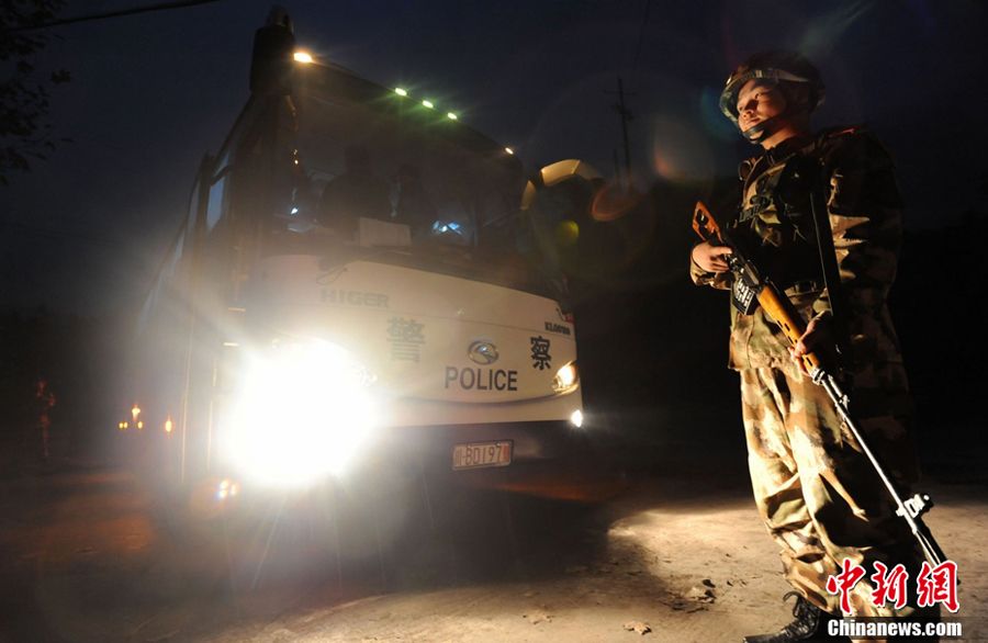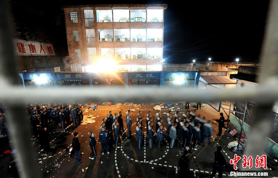 11月24日,首批转移的600多名犯人在武警和监狱警押解下迁往绵阳新址。
