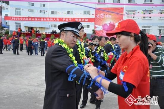 志愿人员与干警共同做活动。