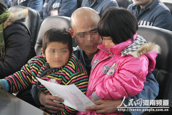 人民网周口11月26日专电 (记者彭雨)11月25日上午,在省周口监狱亲情探监室,来自周口市郸城县的7岁男孩大航紧紧搂着6岁的弟弟二航,紧张地看着眼前这个哭得痛不欲生的男人。这个男人刺眼的光头和陌生的囚服让他深感不安。他试图拒绝这个男人的爱抚,虽然这个男人是他们的父亲。