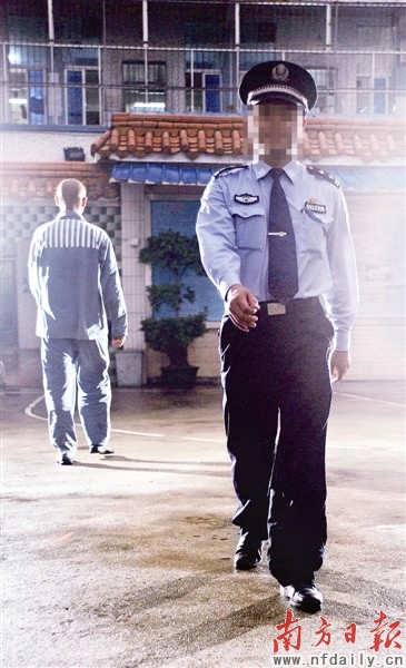 傍晚,高明监狱十六监区一位狱警与罪犯结束谈心。 刘洪群 摄
