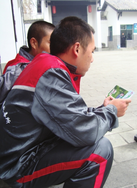 两座四合院,乌木门,红灯笼,青石地板,院内“居民”都剃光头穿制服,进出大院还要经过民警审批。原来,这是资阳强戒所艾滋病强戒学员的集中关押地。