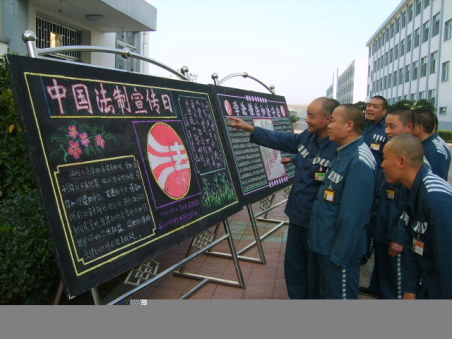 据了解,今年12月4日是第11个“全国法制宣传日”,其主题是“深入学习宣传宪法,大力弘扬法治精神”。省信阳监狱以此为契机,在全狱服刑人员中开展了以“学法、知法、守法、遵规”为主题的“法制宣传周”活动,活动由该狱教育改造科组织,各押犯监区具体实施。
