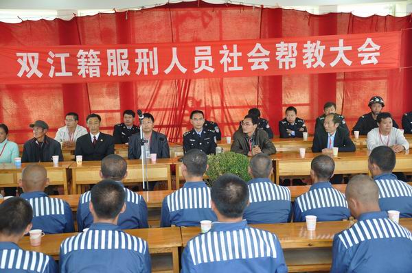 云南省临沧市双江自治县委政法委副书记李伟、双江自治县司法局局长张佳明、服刑人员家属代表、刑释人员代表等18人带着全县人民的委托,于2011年11月16日,到临沧监狱对31名双江籍服刑人员进行帮教。