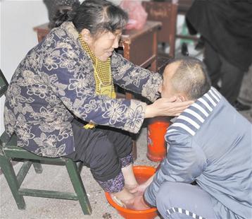 湖北日报讯 图为:服刑人员为母亲洗脚
