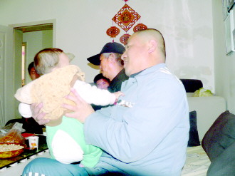 图为海子抱着8个月大的侄子感受到久违的亲情。