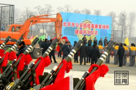 2月23日下午,北京市公安局强制隔离戒毒所举办戒毒康复场所建设开工仪式,市局副局长单志刚,市禁毒委副主任、市局副局长姜良栋,市禁毒办常务副主任、市局禁毒总队总队长赵文忠,公安部禁毒局两禁处处长王刚及市禁毒办副主任、市禁毒教育基地主任刘杰,市局装材处处长张京等领导出席仪式。(董光/摄 2011年2月23日)