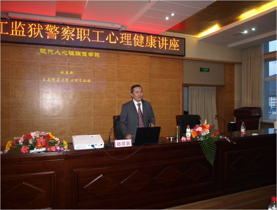 2月8日晚,丽江监狱在景观酒店会议室举办了一场别开生面的心理知识讲座,讲座请到了丽江监狱的“老朋友”――云南师范大学心理学教授赵建新。赵建新教授是云南省著名学者更是心理学领域的专家,早在2011年5月,赵教授就曾为我狱报考心理咨询师的青年警察们开办了为期一个月的培训班。