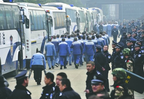 中午12时,随着此次行动的总指挥、省监狱管理局副局长游柱石的一声令下,装载着640余名服刑人员、40多辆车组成的车队从成都监狱依次驶出。为确保安全,每两辆运送服刑人员的大巴车后跟着一辆押解车,全程由交警部门、当地武警部门,公安部门参与押解。
