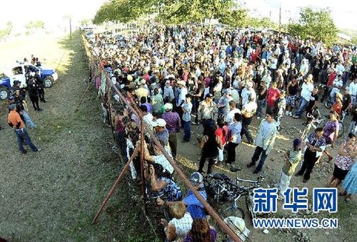 资料图片:2月15日,在洪都拉斯中部城市科马亚瓜,囚犯家属聚集在发生火灾后的监狱外,与警察对峙。当地时间14日深夜,科马亚瓜的一所监狱发生火灾。由于许多囚犯被困在监牢里无法及时逃脱,火灾至少造成272人死亡,35人受伤。在火灾中失踪囚犯的家属15日与当地警方发生对峙和冲突。新华社发(拉斐尔・奥乔亚摄)