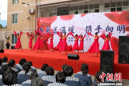 为庆祝“三八”妇女节,成都女子监狱特邀民盟成都市委开展了此次司法帮教活动。在2个多小时的时间里,演员们用精湛的表演为监狱民警和千余名女性服刑人员送去了节日的问候和祝福。
