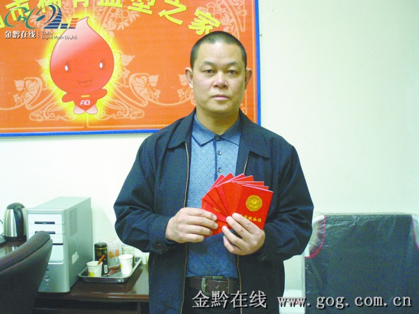 他叫汪黔,46岁,贵阳市羊艾监狱一名干警。获悉2010-2011年度全国无偿献血先进个人表彰开始申报,汪黔专门到省血液中心查看,从2003年至今,他的无偿献血总量达到14700毫升。“这个量相当于换了他全身血液的两遍。”省血液中心工作人员说,更让汪黔意外的是,根据这两年的统计,他的无偿献血量是贵阳地区最高的。