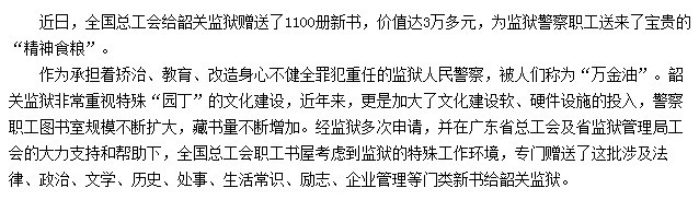 全国总工会送“精神食粮”到韶关监狱