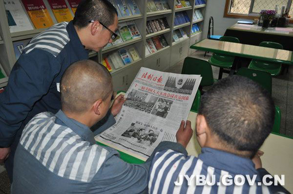 今年的全国“两会”期间,各监区通过电视、广播、报纸等媒体,认真组织全体服刑人员收看新闻联播,收看、收听有关“两会”的新闻,开展读报活动和学习讨论、办黑板报专刊等,在第一时间让服刑人员全面地了解全国“两会”的盛况、进展和《政府工作报告》等内容,深受服刑人员欢迎。