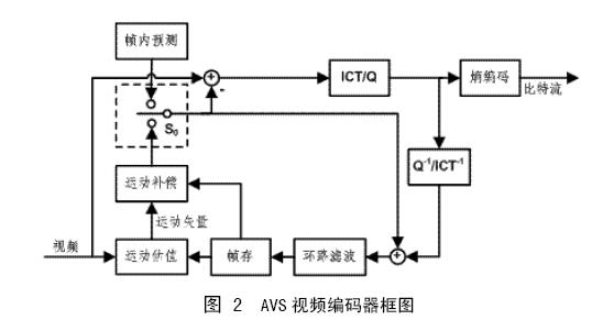 | avs视频与mpeg标准都采用混合编码框架(见图1),包括变换、量化、熵编码、帧内预测、帧间预测、环路滤波等技术模块,这是当前主流的技术路线。avs的主要创新在于提出了一批具体的优化技术,在较低的复杂度下实现了与国际标准相当的技术性能,但并未使用国际标准背后的大量复杂的专利。avs-视频当中具有特征性的核心技术包括:8x8整数变换、量化、帧内预测、1/4精度像素插值、特殊的帧间预测运动补偿、二维熵编码、去块效应环内滤波等。 avs视频编码器框图如下图所示 avs视频标准定义了i帧、p帧和b帧三种不同类型的图像,i帧中的宏块只进行帧内预测,p帧和b帧的宏块则需要进行帧内预测或帧间预测,图中s0是预测模式选择开关。预测残差进行8×8整数变换(ict)和量化,然后对量化系数进行zig-zag扫描(隔行编码块使用另一种扫描方式),得到一维排列的量化系数,最后对量化系数进行熵编码。avs视频标准的变换和量化只需要加减法和移位操作,用16位精度即可完成。