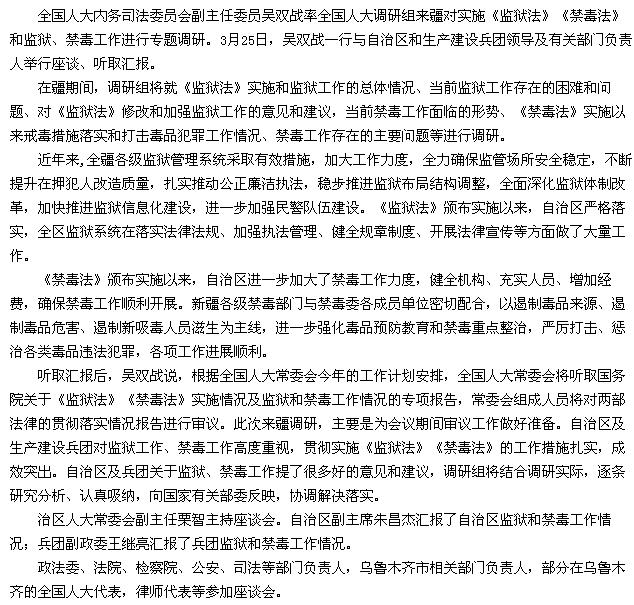 全国人大调研组在新疆调研监狱和禁毒工作