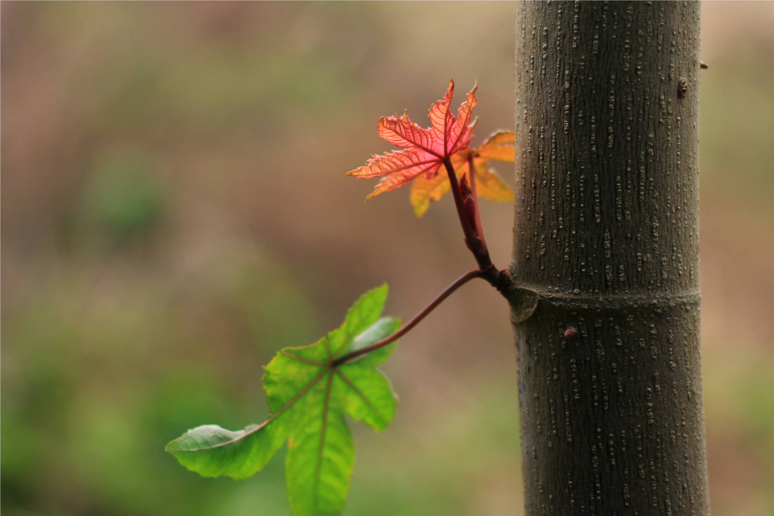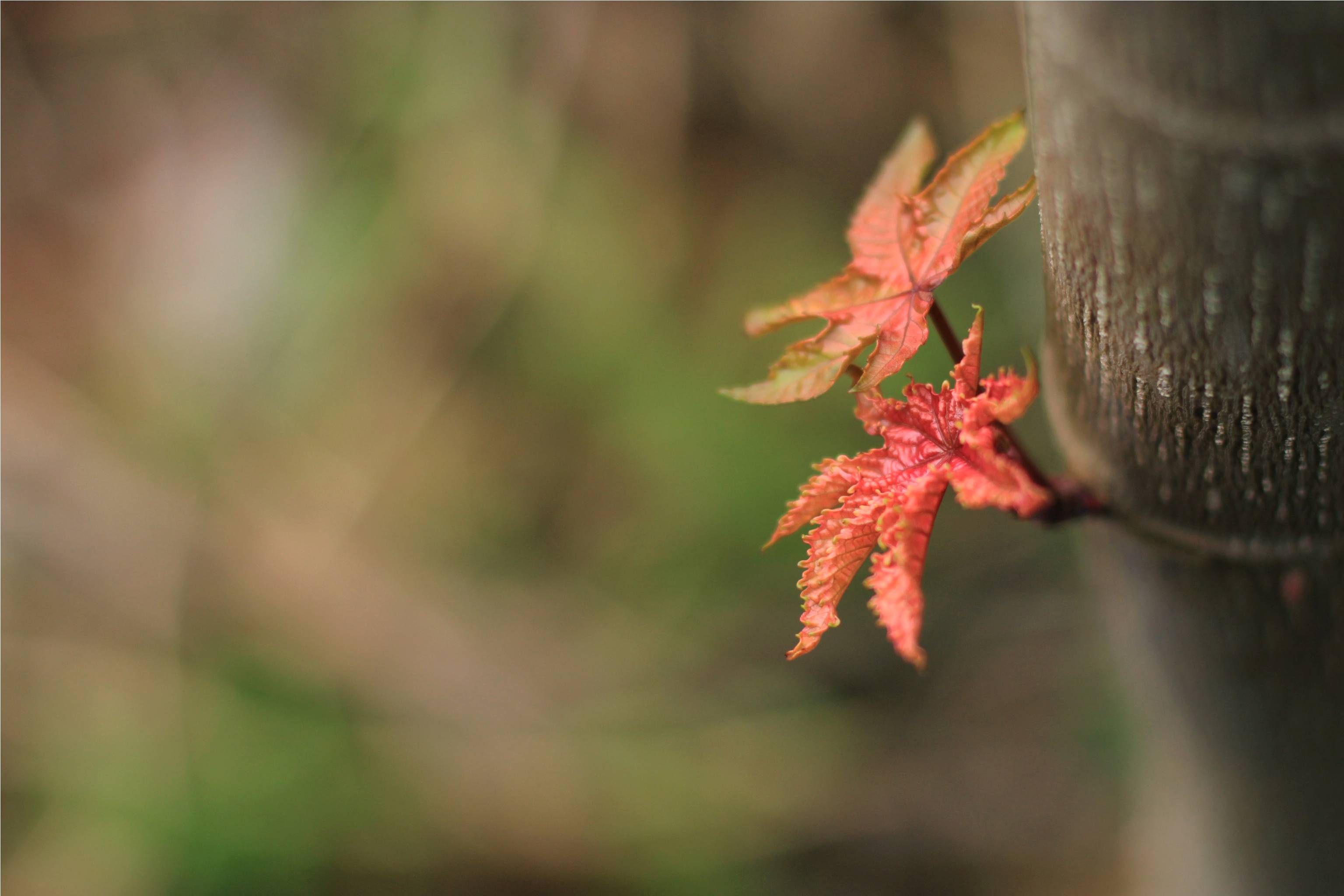 广西区鹿州监狱宣传科 梁永付摄 广西区鹿州监狱警察职工生活区长有几棵蓖麻。3月初,蓖麻树干上长出了新芽,给人们带来了春的信息。拍摄时间:2012年3月5日;使用器材:佳能EOS60D相机、佳能50MM(1.4光圈)镜头。