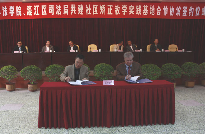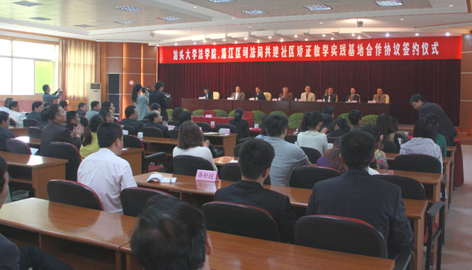 此次汕头大学法学院与濠江区司法局开展社区矫正的合作是贯彻法学院法学教育服务地方的原则,同时也是贯彻实施今年刚刚颁布的《社区矫正实施办法》的具体行动。双方同意开展以下四方面的合作:成立社区矫正志愿者队伍、制订社区矫正方案、依个案分析制订具体帮扶措施、实现双方资源共享。