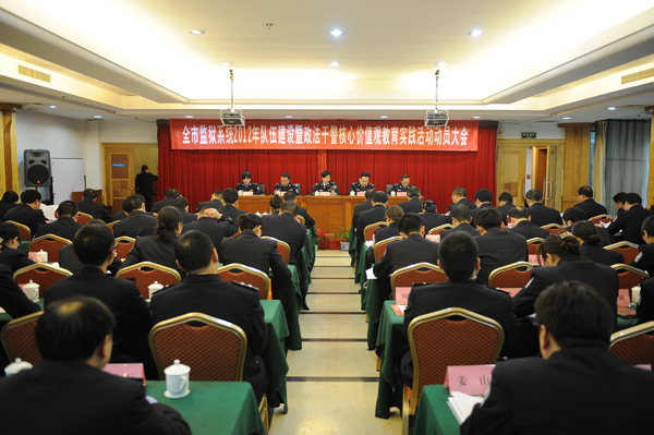 陈政委在讲话中对2011年全市监狱系统队伍建设工作进行了回顾,她认为全系统队伍建设工作在去年取得了七个方面的成效:队伍思想政治教育成效明显,领导干部治监能力有效提高,队伍规范化管理深入推进,党团组织建设不断加强,民警队伍履职能力有效提升,民警队伍形象得到良好展示,从优待警工作取得重大突破。在全面分析了当前队伍建设工作面临的形势后,陈政委指出,2012年全市监狱系统队伍建设要重点抓好八项工作:一是要深入开展政法干警核心价值观主题教育实践活动,把握“四个关键词”,确保队伍建设的正确方向;二是要在创先争优活动中扎实开展基层组织建设年,落实“五个步骤”,提高基层党建工作水平;三是要大力加强队伍管理规范化建设,实现“三个规范”,夯实队伍建设工作基础;四是要严格落实从严管理措施,做到“三个着力”,提升民警队伍执行力;五是要大力开展民警业务能力建设,做到“三个加强”,提升民警队伍履职能力;六是要大力加强监狱警察文化建设,做到“三个坚持”,提升民警队伍社会形象;七是要切实抓好从优待警工作,落实“四项措施”,增强民警队伍凝聚力;八是要不断加强政工队伍自身建设,实现“三个增强”,促进队伍建设工作高效推进。陈政委强调,要坚持“政治建警、素质强警、从严治警、从优待警”的政治工作方针,扎实做好今年队伍建设工作,努力打造政治坚定、业务精通、作风优良、执法公正的高素质监狱人民警察队伍,为推动我市监狱工作持续稳定协调发展提供坚强的思想保证、组织保障和人才支持,以优异成绩迎接党的十八大胜利召开。