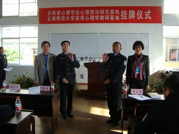 2012年4月6日上午9点,云南省丽江监狱与云南省心理学会、云南师范大学教育科学管理学院联合成立的“云南省心理学会心理矫治研究基地”、“云南师范大学应用心理学教研基地”在丽江监狱挂牌。“心理矫治研究基地”和“应用心理学教研基地”分别是云南省心理学会、云南师范大学面对监狱系统挂的第一块牌,具有重要的意义。