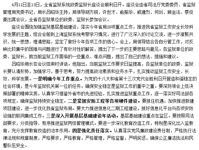浙江省监狱管理局召开全省监狱系统政委监狱长座谈会