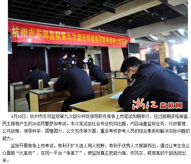 杭州市东郊监狱举行科级领导干部竞争上岗考试