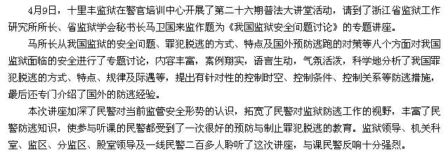 浙江省十里丰监狱举办“监狱安全”专题讲座