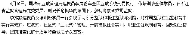 司法部监狱管理局巡视员李豫黔及全国监狱系统刑罚执行培训班学员参考乔司监狱