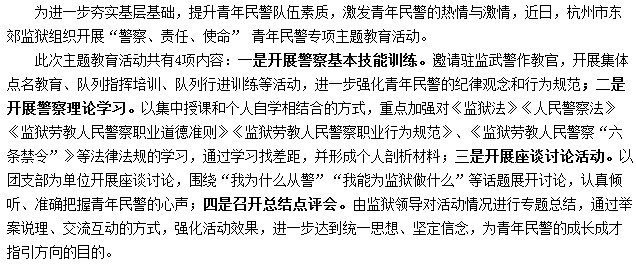 杭州市东郊监狱开展青年民警专项主题教育活动