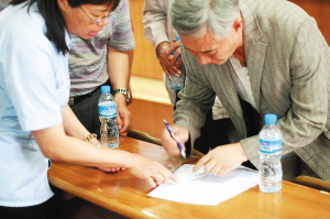 减刑人员在相关手续上签字 都市时报实习记者 周翔 摄