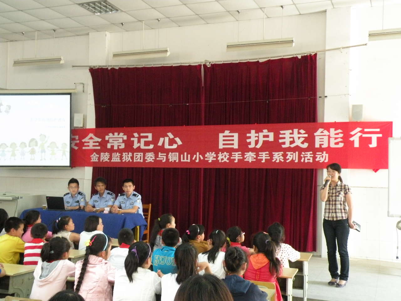 六一前夕,金陵监狱青年民警志愿者赴江宁区铜山小学开展以“安全常记心,自护我能行”为主题的儿童自护教育活动。