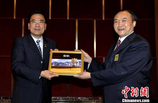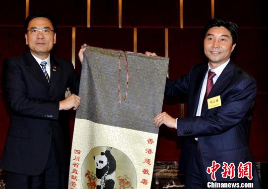 四川省司法厅厅长李仲彬右与香港惩教署署长单日坚互赠礼物。安源摄