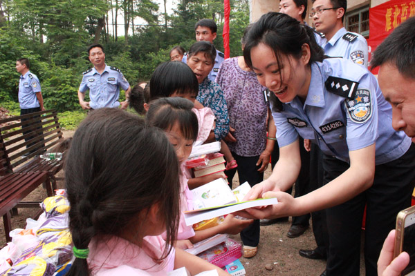 当小女孩们换上漂亮的裙子,坐在崭新的课桌上时,陈老师在新黑板上写下了“我爱祖国”四个字,孩子们用稚嫩的声音齐声念着:“我爱祖国!”,一张张幸福的笑脸比窗外的阳光还要灿烂。青年警察们为孩子们表演了擒敌拳,带孩子们举行了她们生命中的第一次升旗仪式,当国歌声响起,鲜艳的五星红旗飘扬在袁家小学上空时,在场的青年警察们有了一种心灵深处的震动。有一位青年警察说:我们的帮助是相互的,我们给了他们物质上的资助,让他们感受到了社会的温暖,人间的真情。他们让我们懂得珍惜,懂得在逆境中坚守,尤其是陈老师的事迹,让人懂得了什么是责任,什么是担当。