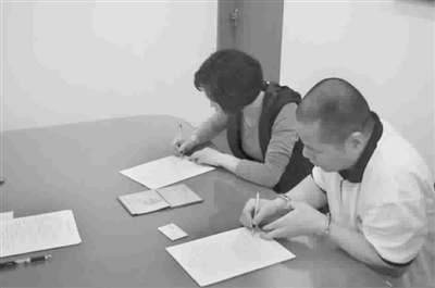■王耀军带着手铐和李春花一起签署自愿结婚声明书 资料照片