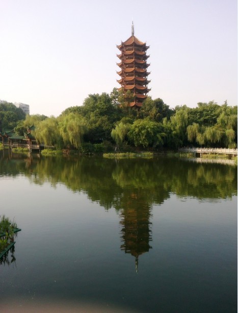 塔影落湖中