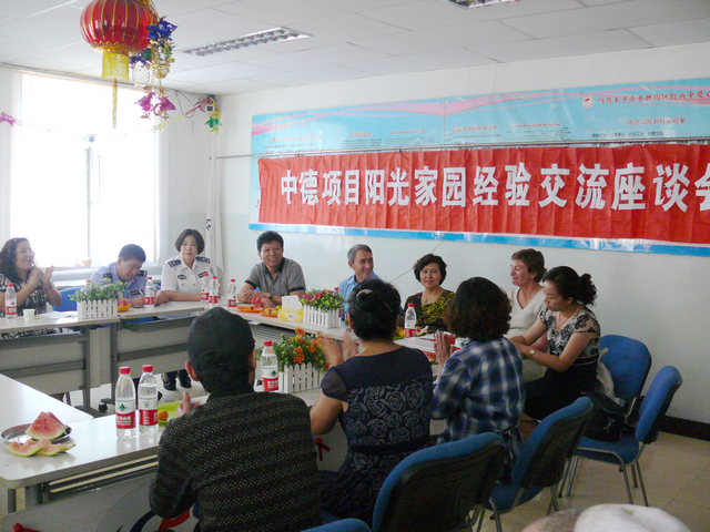 督导期间,Rene Queffelec先生一行与后续照管站工作人员、志愿者、社区工作人员及会员进行了座谈。座谈会上,督导组成员就艾滋病防治、拒绝毒品、多部门合作、家庭关爱、疾病转诊、就业帮助、反歧视等项目实施内容向与会人员进行了细致的了解并对阳光家园开展的工作给予了充分的肯定。会上,志愿者和会员自编自演了小合唱《母亲》和快板《阳光家园真是好》两个节目,受到了督导组人员的高度评价。