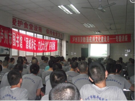 为进一步加强劳教(强制隔离戒毒)场所矫治文化建设工作,树立劳教(强戒)学员爱国主义精神,提升教育矫治质量,促进场所和谐稳定。7月31日泸州市劳教(强制隔离戒毒)所邀请泸州市图书馆“酒城讲坛,文化大讲堂”赵永康老师一行7人来所举行“自强、自立泸州人”专题讲座。