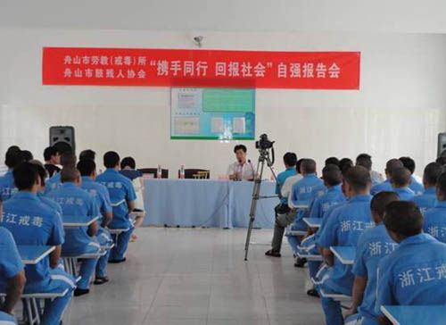 8月11日是全国第三个“肢残人活动日”,舟山市残联、舟山市禁毒支队领导以及肢残人协会的20余名代表到舟山市劳教(戒毒)所,与全体劳教(戒毒)人员一起,开展“携手同行、回报社会”自强报告会系列活动。