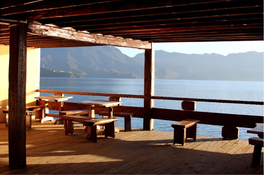 泸沽湖边