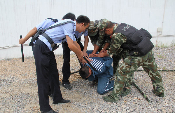 白湖监狱串河监区警笛响起。全副武装的狱内“110” 应急分队和驻监武警官兵在10分钟内全部集结完毕,火速奔赴各卡点,开展设卡、检查、拦截、摸排线索,在监狱内外实施地毯式排查。同时,各监区民警按处置突发事件应急预案有序疏散并点名清查劳动现场服刑人员。经过追击、搜查、抓捕,不到20分钟就及时将脱逃的服刑人员抓获。