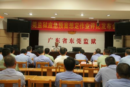 9月5日,东莞监狱举行应急预案想定作业评比发布会,现场检验8月下旬以来各部门、专业功能组、机关值班组的应急预案内容调研完善情况和应急突发事件的处置能力,省监狱管理局副局长陈达超、狱政处、东莞市武警支队领导、监狱领导观摩了发布会。