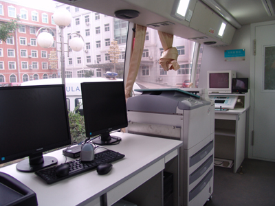 在省局、凌源分局和凌源各监狱的大力支持下,9月11日,投资150余万元的大型高级巡诊车在辽西新康监狱正式投入使用。该车长9米,配备彩超、CR-X光机、X光机、检查床、电脑、空调、医用冰箱、饮水机等医疗检查设备,是我省监狱系统最先进、最高端巡诊医疗设施,也是辽西新康监狱加强基层基础建设的又一有力举措。