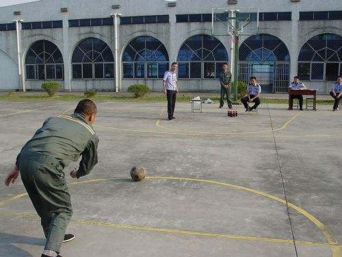 “加油!加油!”10月1日下午,该所在篮球场开展了趣味运动,共分为“足球射门”、“快乐保龄”、“弹珠接力”三个项目。趣味运动无需太多的技巧,因此也吸引了众多劳教人员报名参加。看着“足球射门”选手原地转三圈后摇摇晃晃射门的样子、看着“快乐保龄”选手一下就打倒所有可乐瓶而兴高采烈的样子、看着“弹珠接力”选手因怕弹珠掉落而小心翼翼的样子,场下的劳教人员时而为参赛选手加油鼓劲,时而笑的合不上嘴。