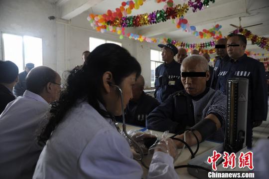 监狱医院民警为老年服刑人员检查身体。 卢洋 摄