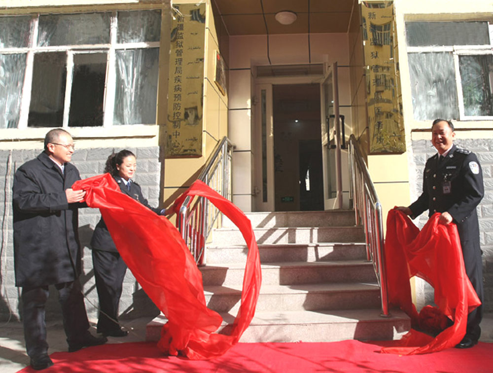 自治区司法厅副厅长、自治区监狱管理局党委书记、局长谢晖和自治区卫生厅巡视员王绍华共同为监狱管理局疾控中心揭牌。