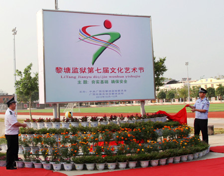 开幕式上,政委潘业任首先作了热情扬溢的讲话。随后,监狱长钟峰首先宣布黎塘监狱第七届文化艺术节开幕。监狱长钟峰、政委潘业任一同为艺术节徽标揭幕,现场鞭炮轰鸣,监狱第七届文化艺术节正式拉开了帷幕。