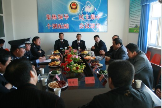 来到会议室,且末监狱监狱长母继东同志向亲临我监狱检查指导工作的兵团检察院领导就我监狱刑罚执行工作进行汇报,围绕监狱基本情况、民警执法工作、罪犯权益保障、刑罚执行工作以及存在的问题和不足等五个方面,肖明生检察长在听取汇报后,就民警福利待遇、服刑人员的伙食、硬件设施建设、监狱未来发展规划等进行调研并提出意见。他指出,且末监狱地处偏远,但具有天然优势,就是离县城很近,这就为监狱经济发展提供了得天独厚的契机,监狱可利用这一条件,多与县城企业联系、沟通、拉项目,形成合作共赢的模式,不仅能解决监狱经济收入困难,而且有利于监狱事业不断发展。对于服刑人员的改造工作,肖明生检察长强调,一定要让服刑人员学到技术,并坚持做到理论与实践相结合,只有这样,他们刑满释放后,才能在社会上立足,同时也有利于社会的和谐稳定。