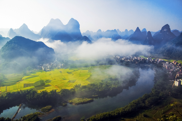 雾罩群山露秋色