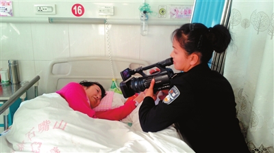 教育科的李警官蹲在病床边,撑起摄像机,对着厉荣的脸进行拍摄。